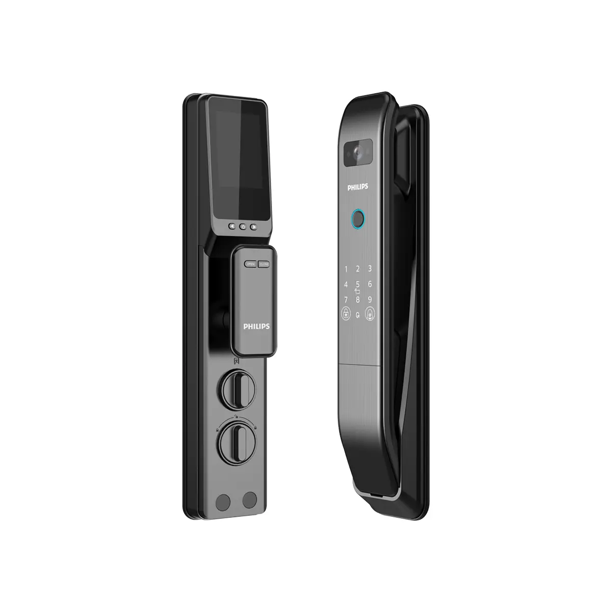 دستگیره هوشمند فیلیپس DDL303-VP-5HWS ترکیبی از امنیت سطح بالا و امکانات هوشمند است. این مدل با صفحهنمایش ۳٫۵ اینچی به شما اجازه میدهد بدانید چه کسی پشت درب است، و با دوربین و بلندگوی داخلی، امکان مشاهده و برقراری ارتباط فراهم میشود. با روشهای متعدد بازگشایی شامل اثر انگشت، رمز، کارت و حتی کلید مکانیکی، و با امکان اتصال به اپلیکیشن و خانه هوشمند.